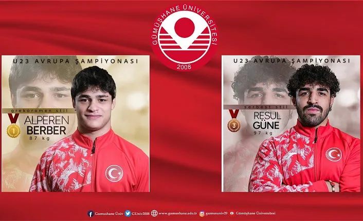 Gümüşhane Üniversitesi Spor Bilimleri Fakültesi öğrencileri Arnavutluk’un Tiran kentinde 8-14 Mart 2025 tarihleri arasında düzenlenen U23 Avrupa Şampiyonası’nda birinci ve üçüncü oldu. Milli sporcu öğrenci Alperen Berber, 23 Yaş Altı Avrupa Güreş Şampiyonası’nda altın madalya kazanarak Avrupa Şampiyonu oldu. Grekoromen stil 87 kilogramda ülkemizi temsil eden Alperen Berber, finalde Fransız rakibi Vladimeri Karchaidze ile karşılaştı. Milli güreşçi, çeyrek finalde bağımsız sporcu Baskhan Saidov’u 6-1, yarı finalde ise Ukraynalı Ivan Chmyr’i 4-1 yenerek finale yükselmişti. Çekişmeli geçen mücadelede 3-1 öndeyken rakibini tuşla yenen Alperen, altın madalyanın sahibi oldu. Alperen Berber, geçen yıl Romanya’nın başkenti Bükreş’te büyükler kategorisinde Avrupa şampiyonluğuna ulaşmıştı. Serbest stil 97 kilogramda ülkemizi temsil eden Spor Bilimleri Fakültesi Antrenörlük bölümü milli sporcu öğrencisi Resul Güne ise Slovak rakibi Adam Jaksık’ı 4-0 öndeyken tuşla yenerek bronz madalyanın sahibi oldu. Öğrencilerinin üniversiteyi gururlandıran bu büyük başarıları hakkında açıklamalarda bulunan Rektör Prof. Dr. Halil İbrahim Zeybek şunları söyledi: “Öğrencilerimizin Avrupa arenasında elde ettiği bu büyük başarılar bizleri gururlandırıyor. Üniversitemiz Spor Bilimleri Fakültesi öğrencilerinin uluslararası arenada milli formayla gösterdikleri üstün performans, bizlere gelecekte daha büyük zaferlerin habercisi olduğunu gösteriyor. Üniversitemiz, akademik başarılarının yanı sıra spor alanındaki yetenekleriyle de öne çıkan öğrenciler yetiştirmeye devam ediyor. Öğrencilerimizin bu büyük başarısı azmin, disiplinin ve kararlılıklarının bir sonucudur. Öğrencilerimizin ulusal ve uluslararası alanlardaki başarıları, bizler için ayrı bir gurur kaynağıdır. Öğrencilerimizin elde ettikleri başarılarda emeği geçen başta ailelerine, antrenörlerine, Üniversitemiz Spor Bilimleri Fakültesine ve tüm destekçilerine teşekkür ediyorum. Öğrencilerimizin ilerleyen dönemlerde de ülkemizi en iyi şekilde temsil edeceğine inanıyor, başarılarının devamını diliyorum.”