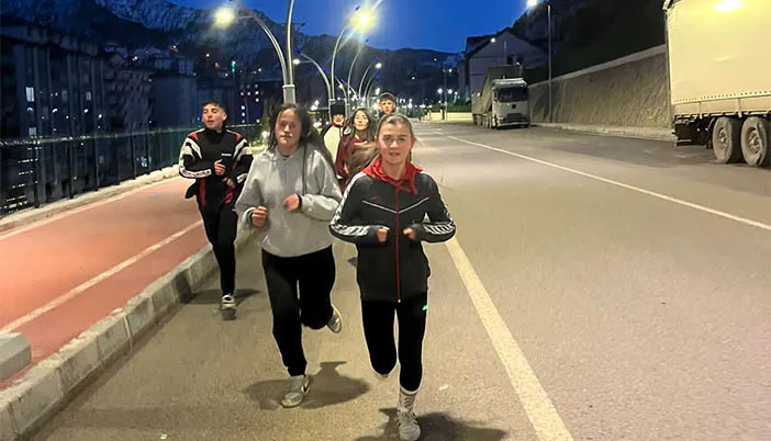 Antrenör Ertuğrul Sarı yönetiminde çalışmalarını sürdüren sporcular, 10 Ocak’ta Erzincan’da yapılacak Türkiye Okul Sporları ve Ferdi Kulüp Şampiyonası’nda Gümüşhane’yi temsil edecek. Sınırlı imkânlara rağmen büyük bir azimle hazırlanan atletler, başarıyla dönmeyi hedefliyor.