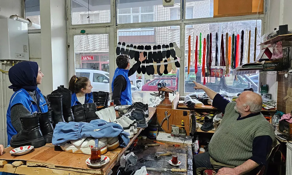Gümüşhane Gençlik Merkezi, toplumsal değerleri ve kültürel mirası canlı tutmak amacıyla hayata geçirdiği “İz Bırakanlar Projesi” kapsamında anlamlı bir ziyarete daha imza attı. Gençlik Merkezi üyeleri, şehrin yaşayan tarihi niteliğindeki, 50 yıldır ayakkabı zanaatını icra eden Mevlüt Tutcu’yu atölyesinde ziyaret ederek, onun bilgi ve tecrübelerinden faydalandı.